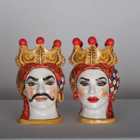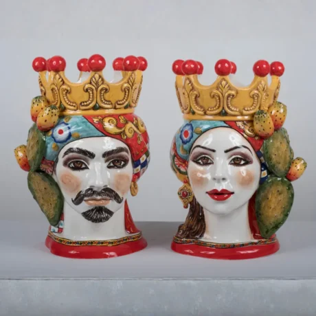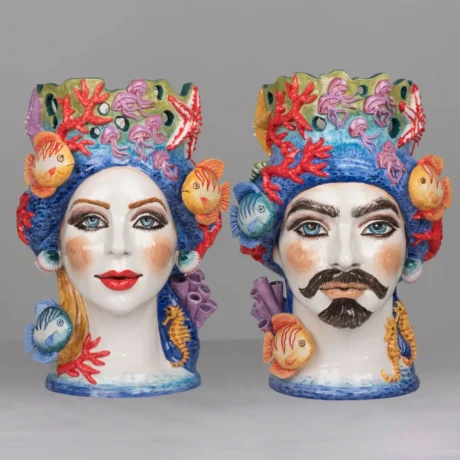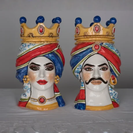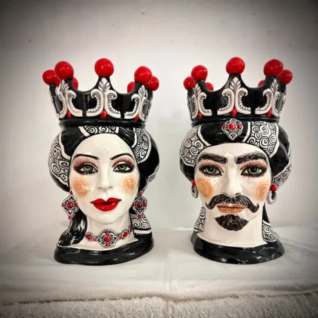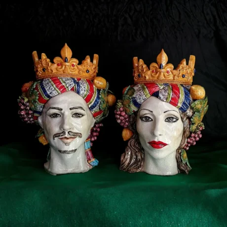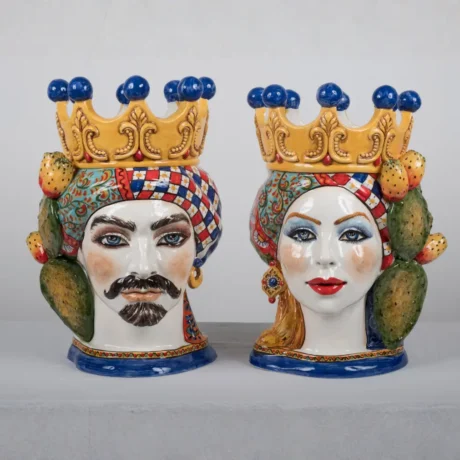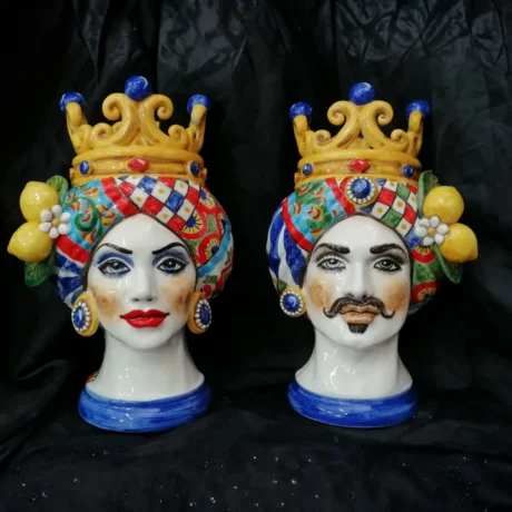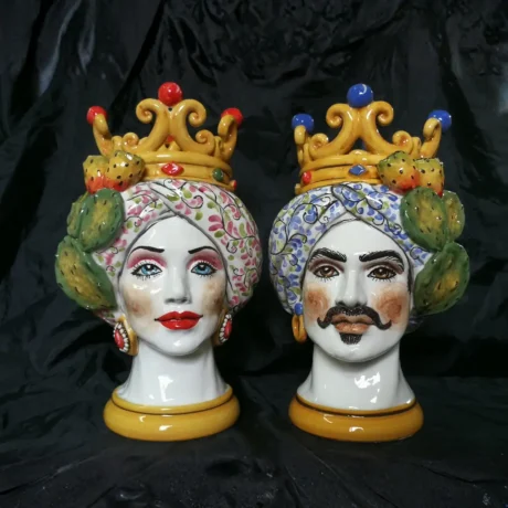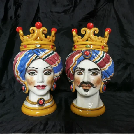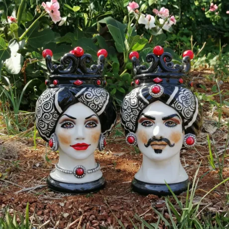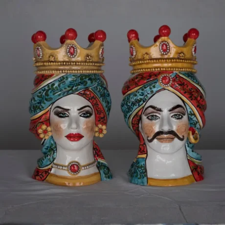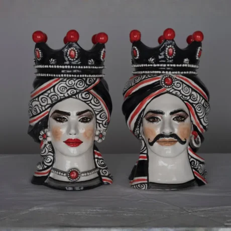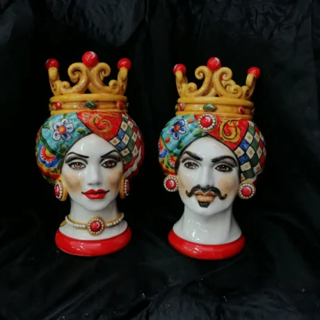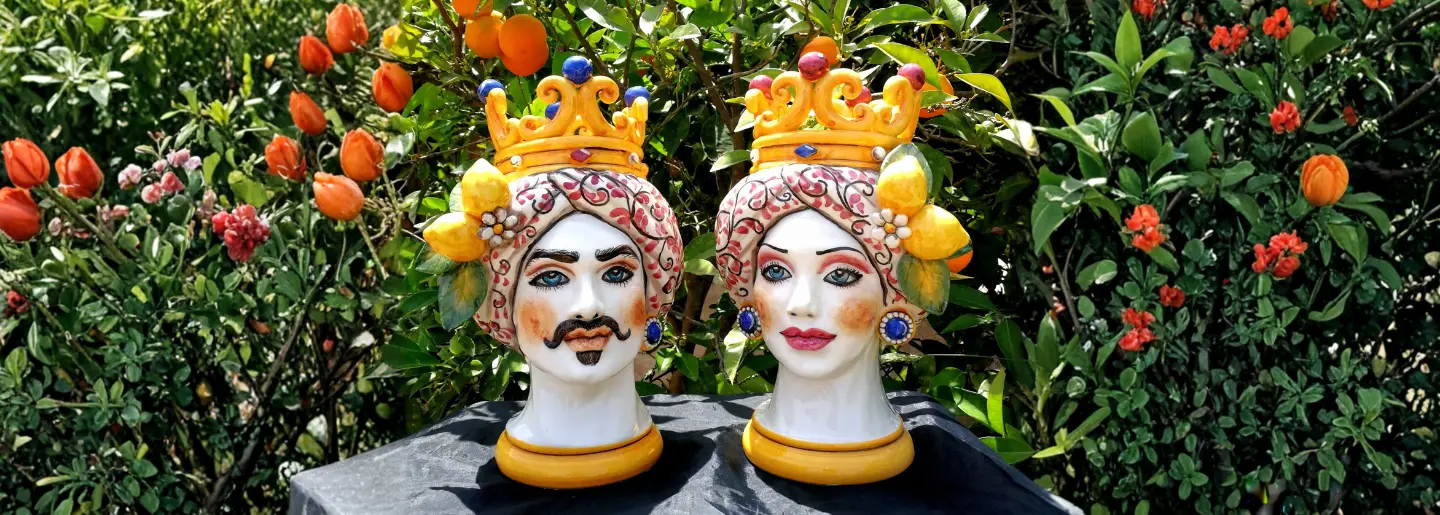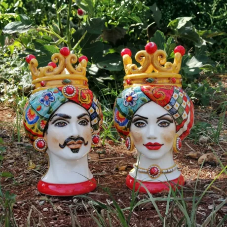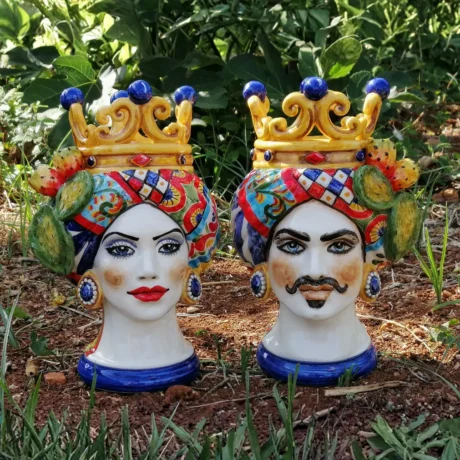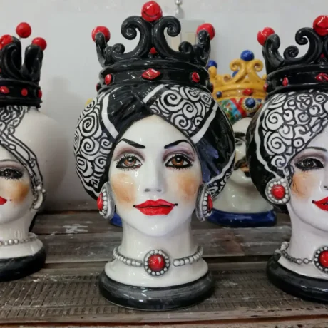 Teste di Moro in ceramica siciliana dipinte a mano, complementi d’arredo artigianali made in Sicily